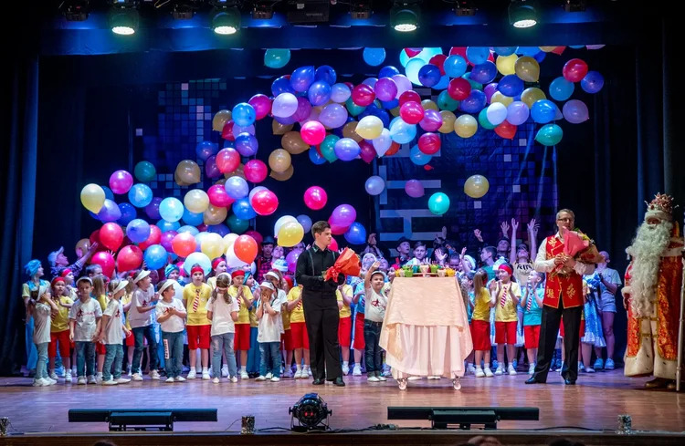 многочисленный коллектив ансамбля во главе с опытными педагогами