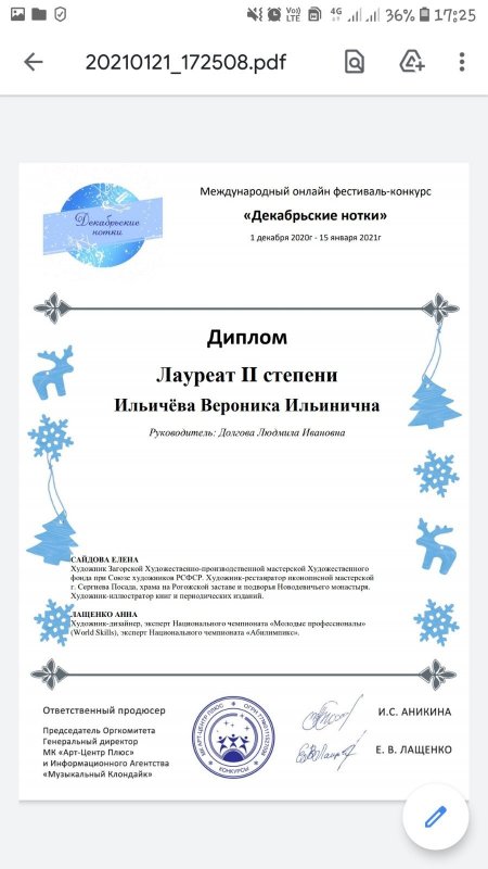 Воспитанница ДДТ Ильичева Вероника (педагог Долгова Людмила Ивановна) одержала победу в международном онлайн конкурсе «Декабрьские нотки». Она стала лауреатом II степени. Поздравляем юную художницу!
