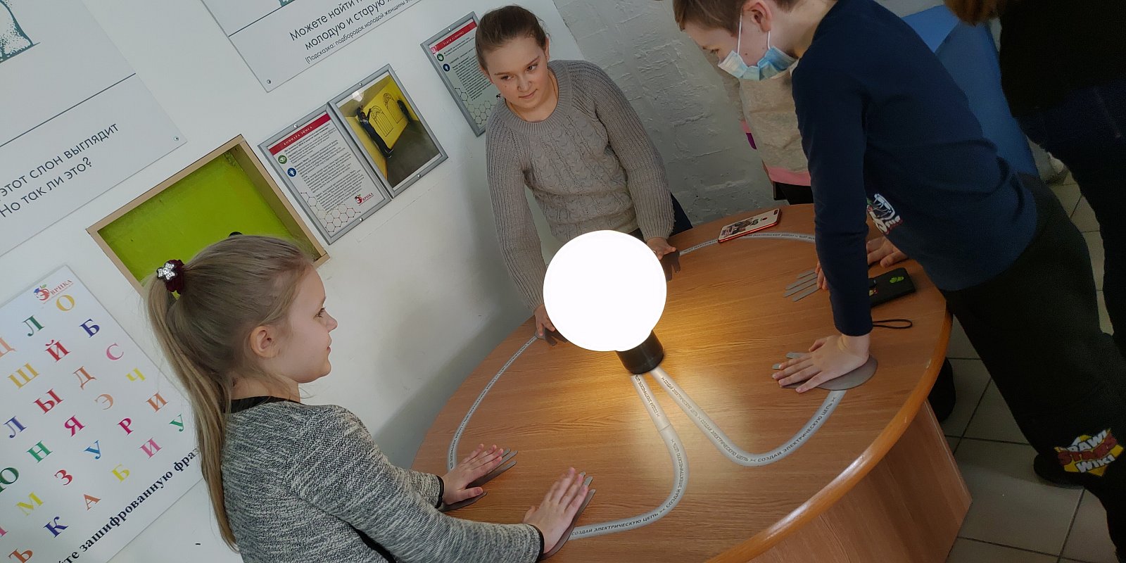 А потом мы поехали «заниматься наукой» в научно-познавательный центр «Эврика». Никогда бы не догадался, что за скромными вывесками и дверями столько научных чудес! Что такое «научно-познавательный центр»? Это место, где в игровой форме рассказывается об основных законах физики, химии, биологии и других научных дисциплинах. Здесь представлено более 150 экспонатов, которые можно (и нужно!) трогать, приводить в действие, смотреть, как получается молния из катушки Тесла, что находится внутри тела человека, как оказаться внутри мыльного пузыря и как заставить летать кран. Вы можете посетить музыкальную студию, комнату Эймса, комнату гравитации, комнату «вверх дном», экспонат «голова на блюде», поэкспериментировать с контактной стеной, посидеть на стуле йога… В музее представлены экспозиции по механике, гидродинамике, оптике, акустике, аэродинамике, магнетизму, электричеству, анатомии. Я не думал, что наука бывает такой нескучной! Еще у нас был шпионский мастер класс, на котором мы с помощью азбуки Морзе шифровали свое имя, писали ватной палочкой, смоченной в лимонном соке, а потом проявляли буквы водой с йодом и ставили отпечатки пальцев. Вроде все секреты раскрыл? А может в знакомом городе есть еще места тайн и открытий? Расскажите, приеду, посмотрю. Я сегодня для себя два таких места открыл. Спасибо экскурсии.