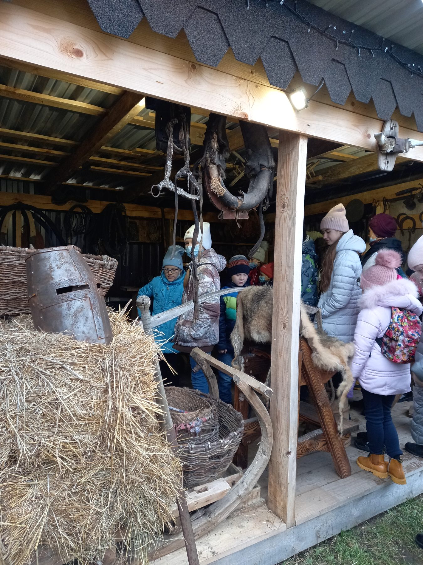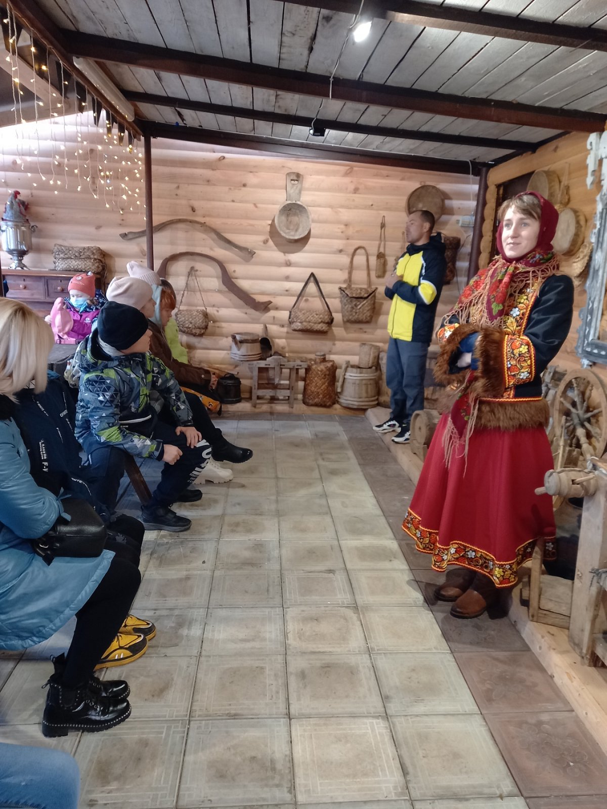 Ребята побывали на деревянной веранде с русской печкой, услышали увлекательный рассказ о старинных нравах и обычаях, посетили старую мастерскую, где увидели приспособления и инструменты для работы всельском хозяйстве. Для ребят был проведен мастер-класс, где они расписывали свой индивидуальный деревянный оберег. Во дворе пообщались с животными, которые живут на территории музея: енотихой Нюрой, кроликами, рыжим пони, парой уток, полюбовались на шустрых белок.