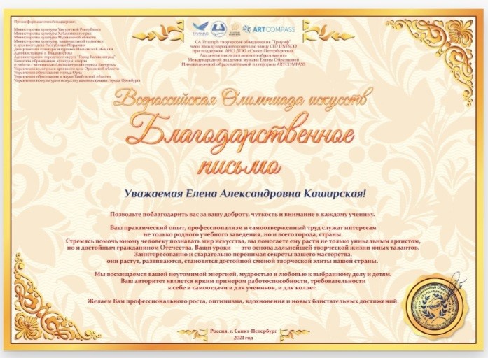 А руководителя Меланьи – Елену Александровну Каширскую - Благодарственным письмом.
