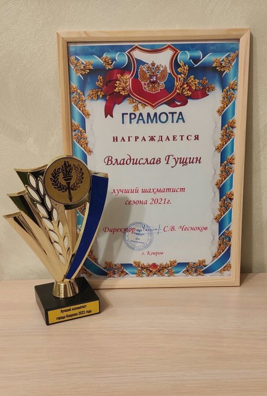 21 января в ДК « Современник» в торжественной обстановке воспитанник ДДТ Владик Гущин стал лауреатом премии «Лучший шахматист города Коврова сезона 2021 года».