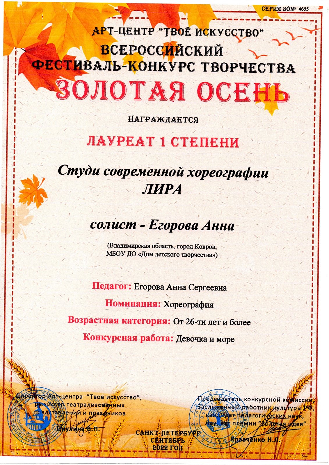 Соло Егорова Анна Сергеевна (девочка и море) - Лауреаты 1 степени