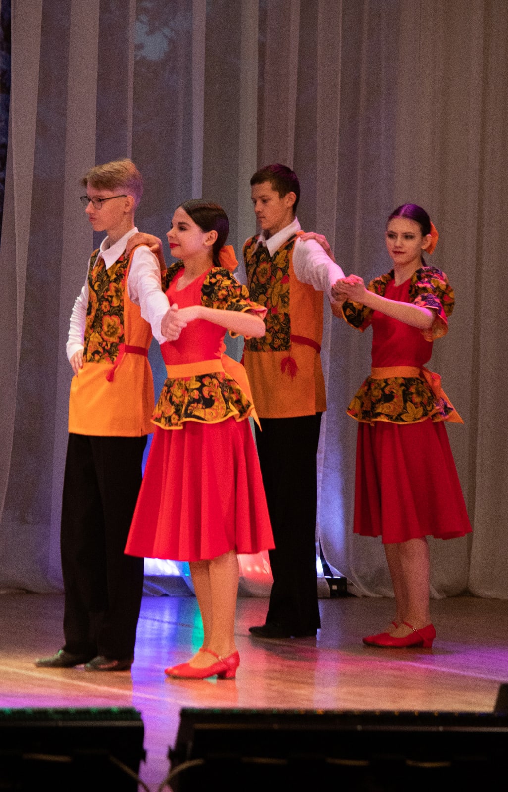 На сцене выступали ребята из образцовых коллективов "Синтез", "РитМикс", "Своя радуга". Вокалисты группы "Звонкие" добавили в концерт атмосферу тепла и уюта.