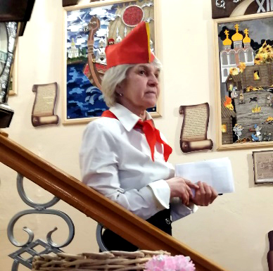 Затем прошли теплые воспоминания о пионерском детстве у импровизированного костра, послушали пионерские песни «О первом пионерском отряде», «Пусть всегда будет солнце», «Орленок» и др. Так, через связь времен и поколений, прошла встреча поистине задушевного общения.