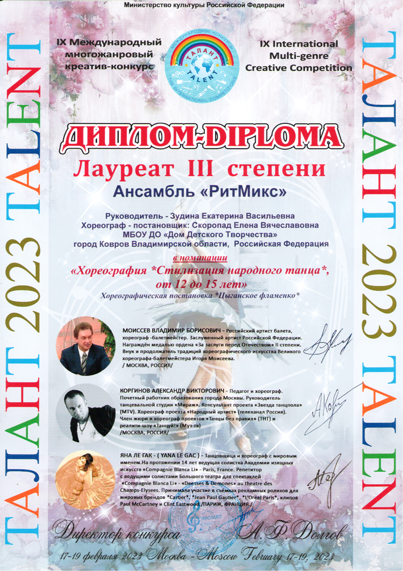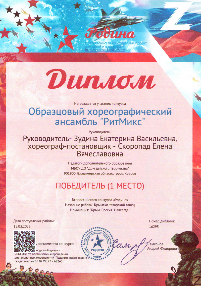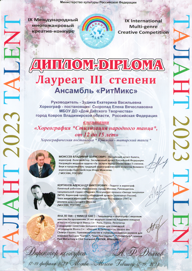 Март 2023 года стал победоносным для воспитанниц образцового хореографического ансамбля «РитМикс» МБОУ ДО «Дом детского творчества»(педагоги дополнительного образования Зудина Е.В. и Скоропад Е.В.).